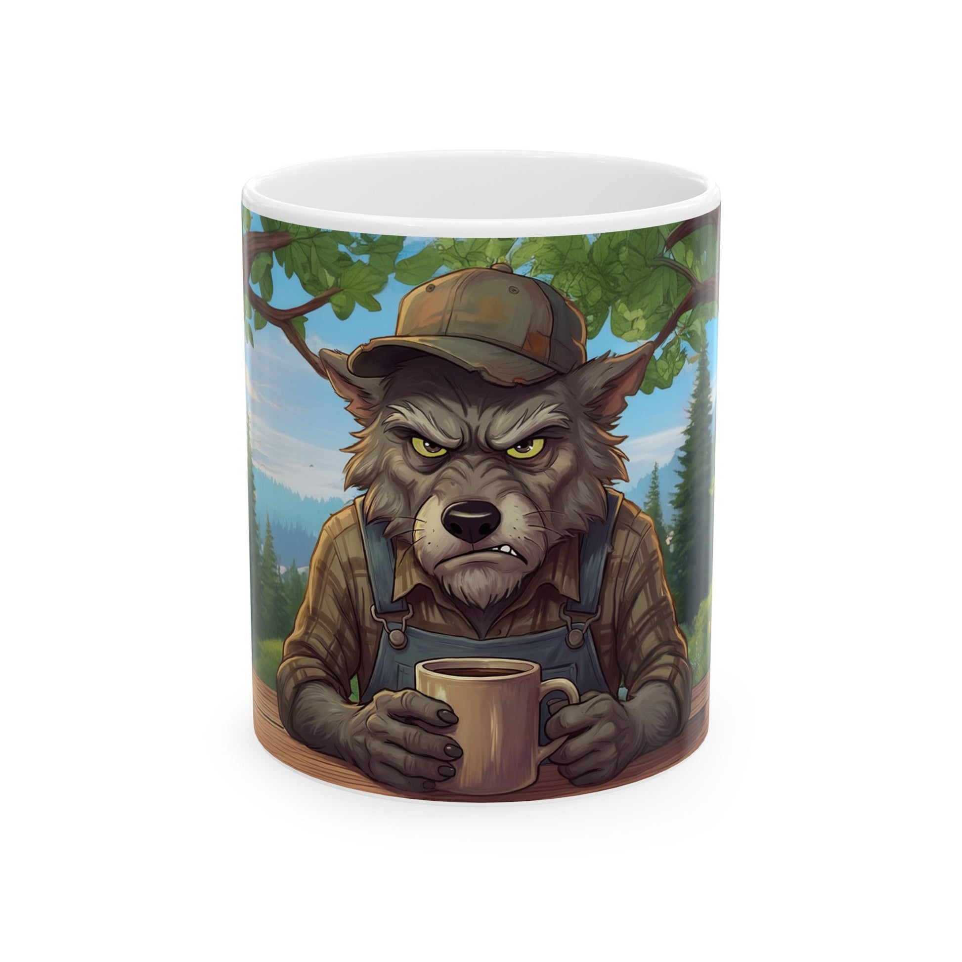 Grumpy Wolf in the woods — Ceramic Mug (11oz, 15oz)