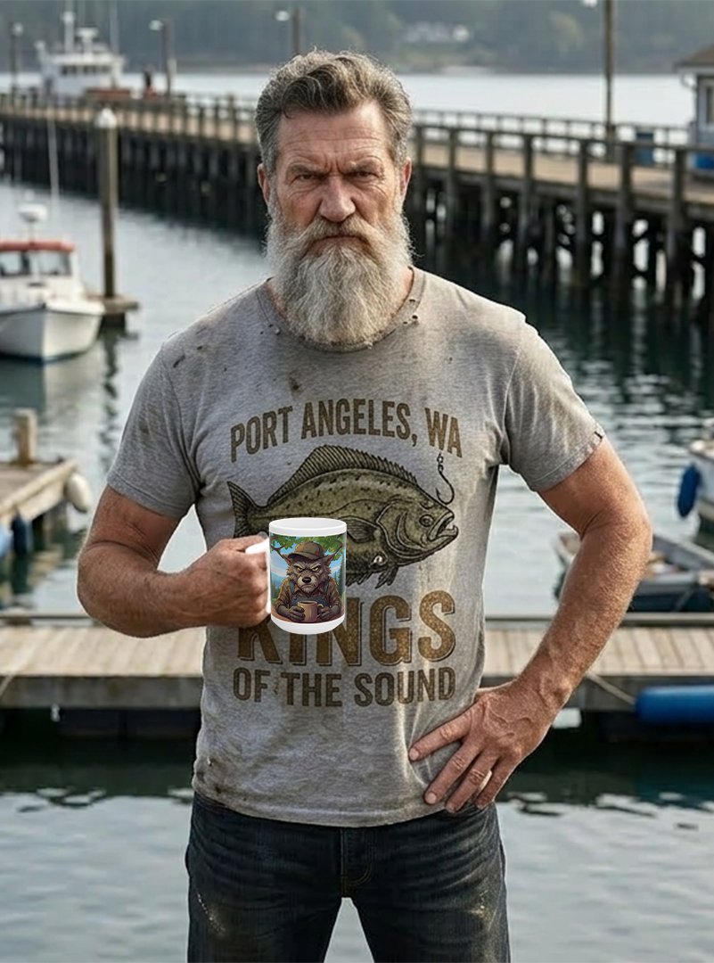 A sturdy ceramic mug wrapped in a bold, full-color illustration of a grizzled wolf farmer clutching a steaming cup. The glossy finish makes the artwork pop, with crisp greens from the tree canopy and deep, moody tones in the wolf’s weathered face and denim overalls. Hold it on a slow morning when the world is waking up and the coffee feels like a small act of defiance. This mug adds a touch of rugged character to your counter — the kind of piece that sparks a smile (or a smirk) before your first sip. Dishwasher- and microwave-safe, lead- and BPA-free, it’s built for everyday use and keeps the print bright wash after wash. Choose 11oz for a classic morning cup or 15oz when you need extra fuel for long days in the field or at the studio.