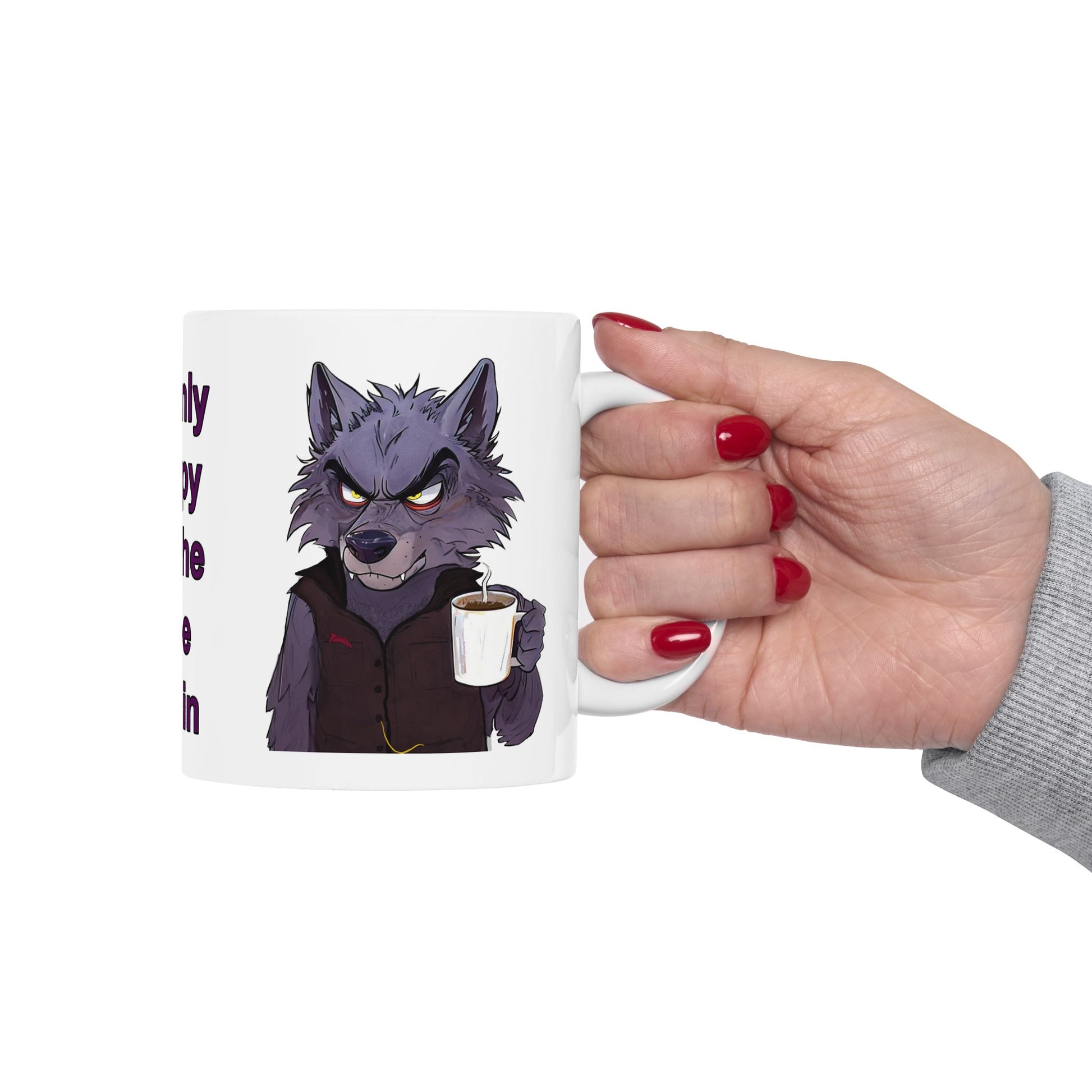 Meet Vest Wolf, the rugged, rumbling, no-nonsense caffeine enforcer of the pack. With that narrowed glare, bristling fur, and a steaming cup gripped like a weapon of mass awakening, this wolf brings serious “don’t even breathe wrong near me” energy.