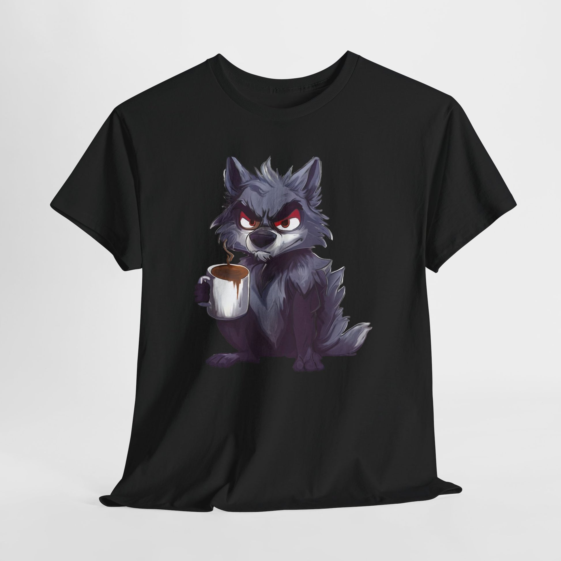 SCUFFY WOLF WITH COFFEE T-SHIRT