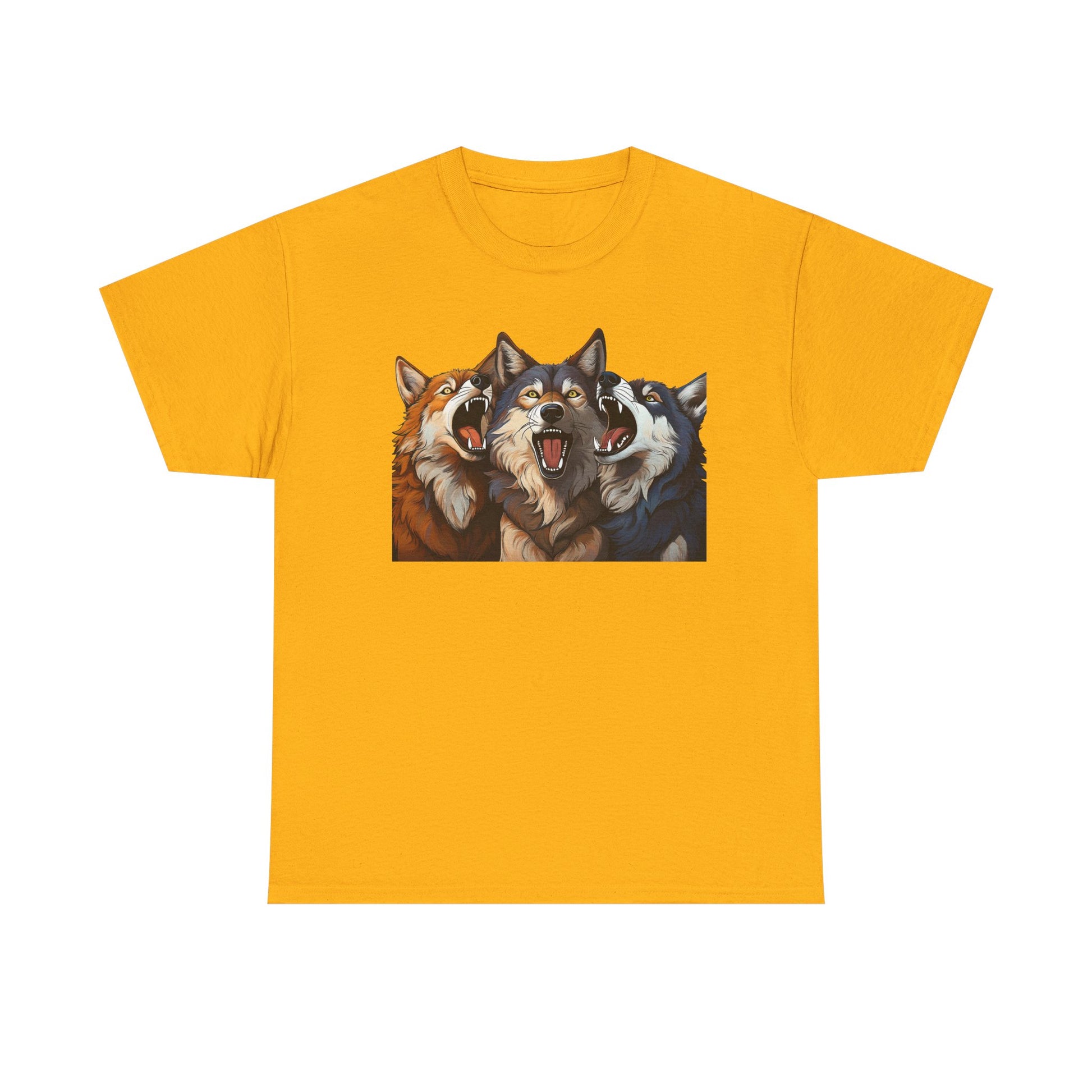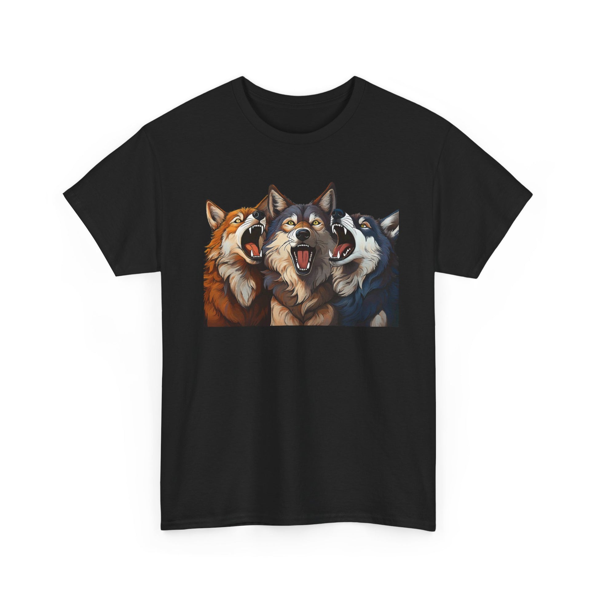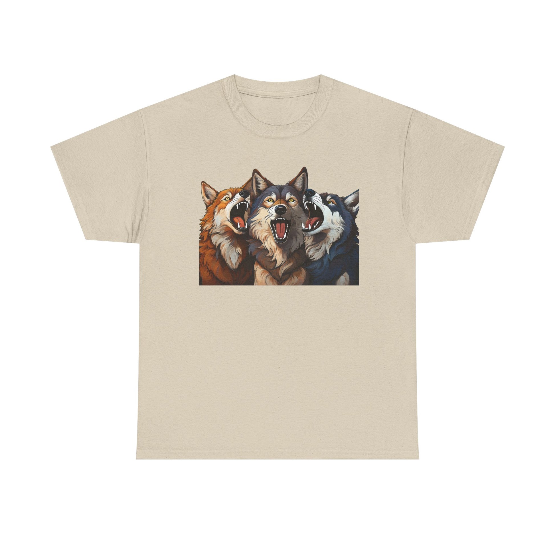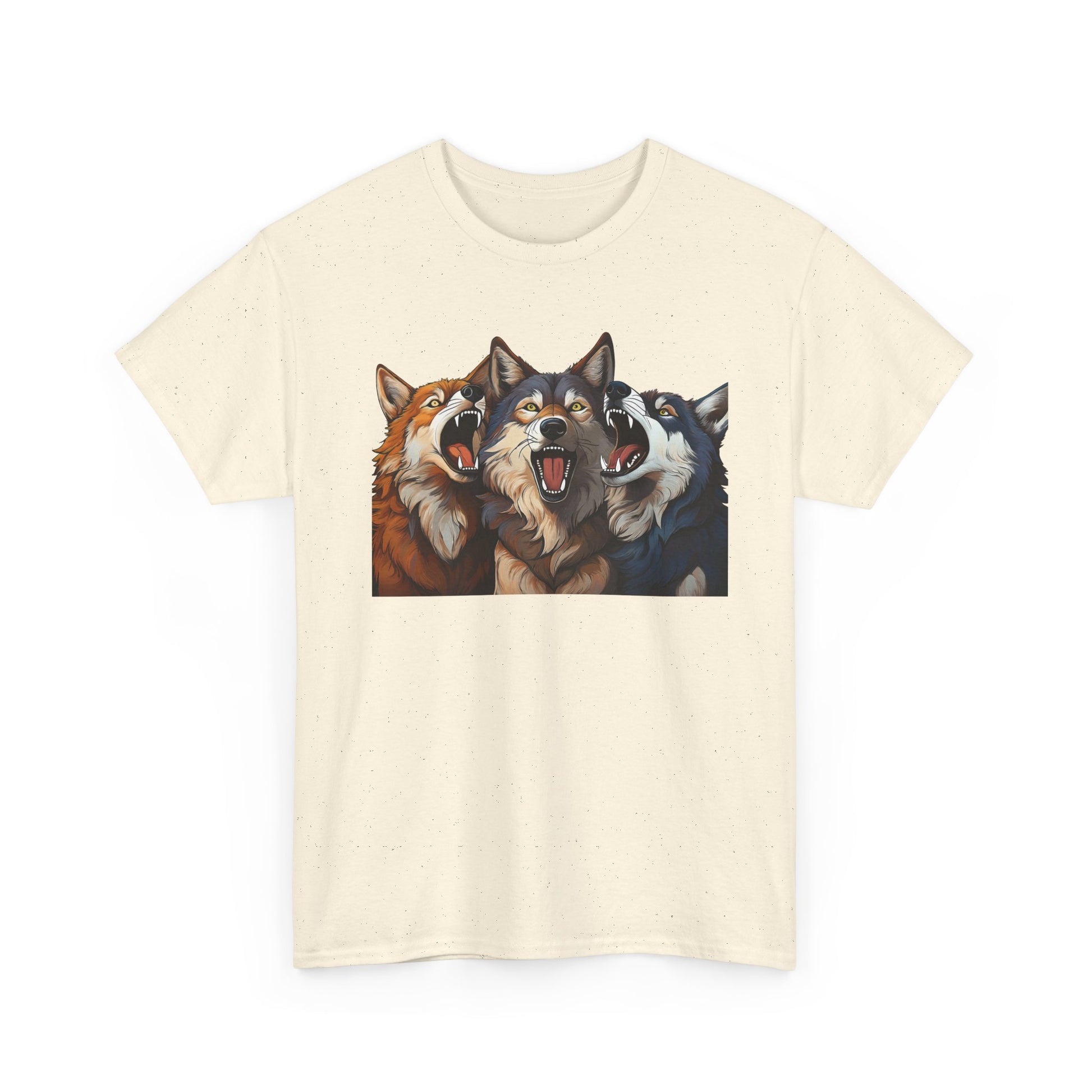 This classic-fit tee brings a burst of wild energy to everyday wear. A bold, original print of three howling wolves sits chest-center — expressive faces, rich fur tones, and a touch of grit from the Natural cotton flecks give it an authentic, outdoorsy feel. The breathable 100% cotton body, ribbed collar, and tear-away label keep it comfortable for long days on the trail or relaxed nights by the fire. It layers easily under jackets or pairs with denim for a casual look that speaks to anyone who lives for nature, canine companionship, and adventures off the beaten path.