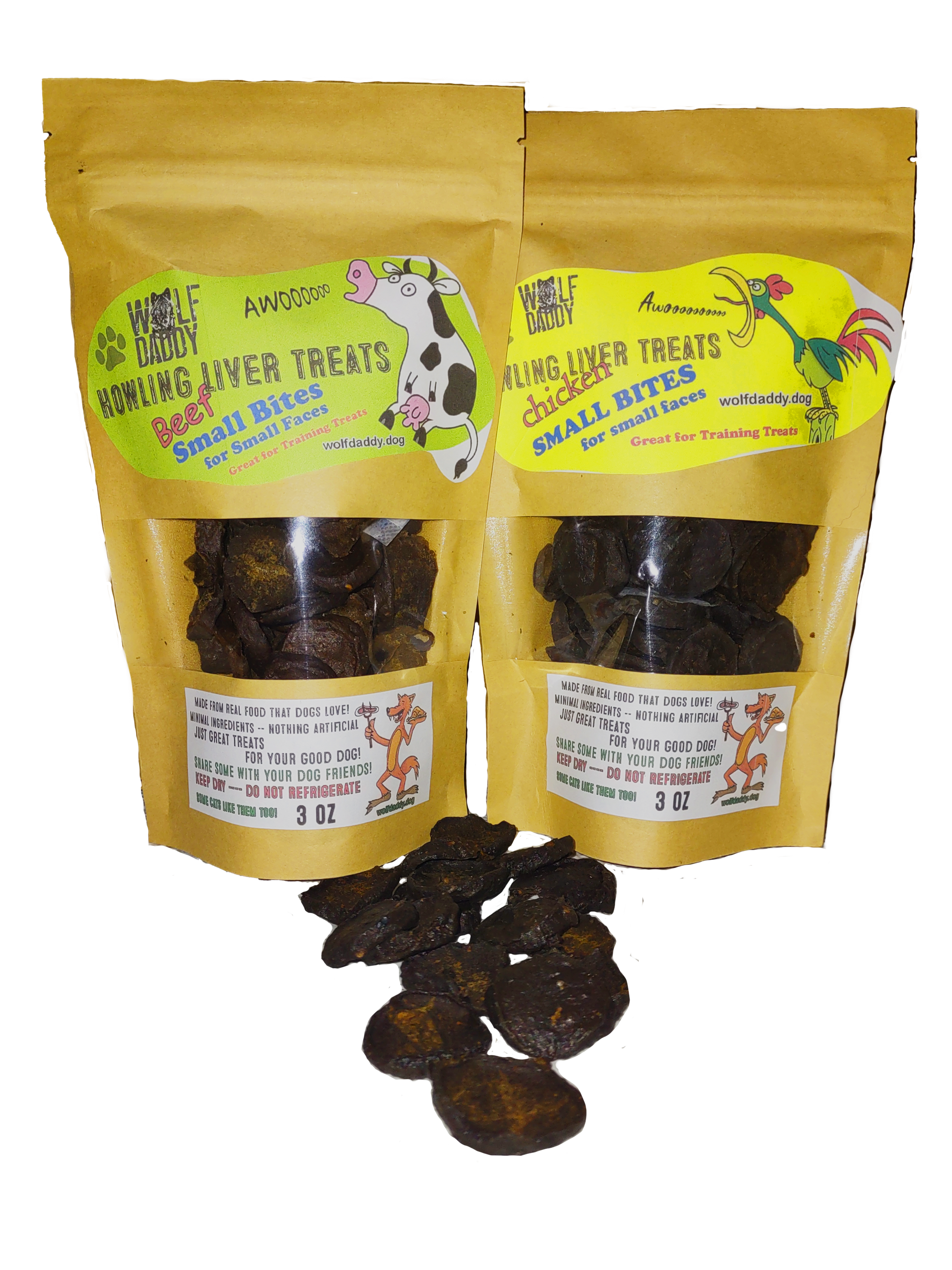 Why choose chicken or beef when your dog can enjoy both in adorable, crunchy, penny-sized perfection? Wolf Daddy’s Small Bites Chicken & Beef Combo Pack is made for pups who want options… and for humans who like saving a couple bucks while spoiling their best friend.