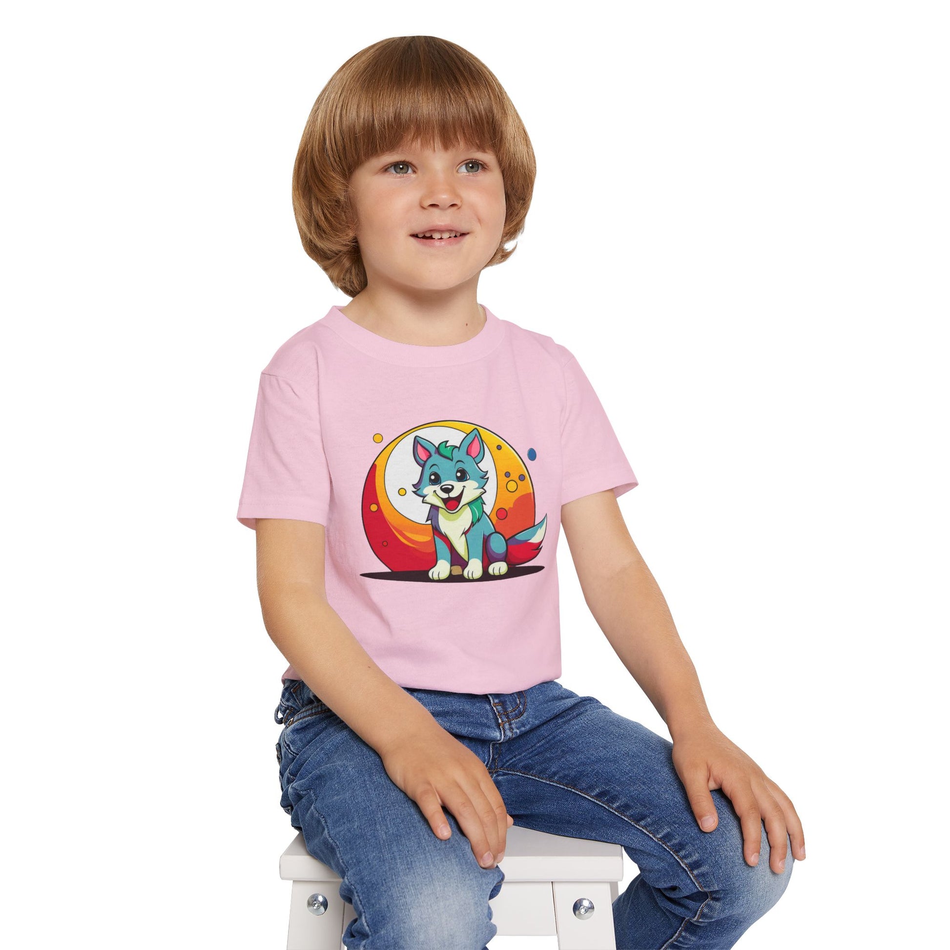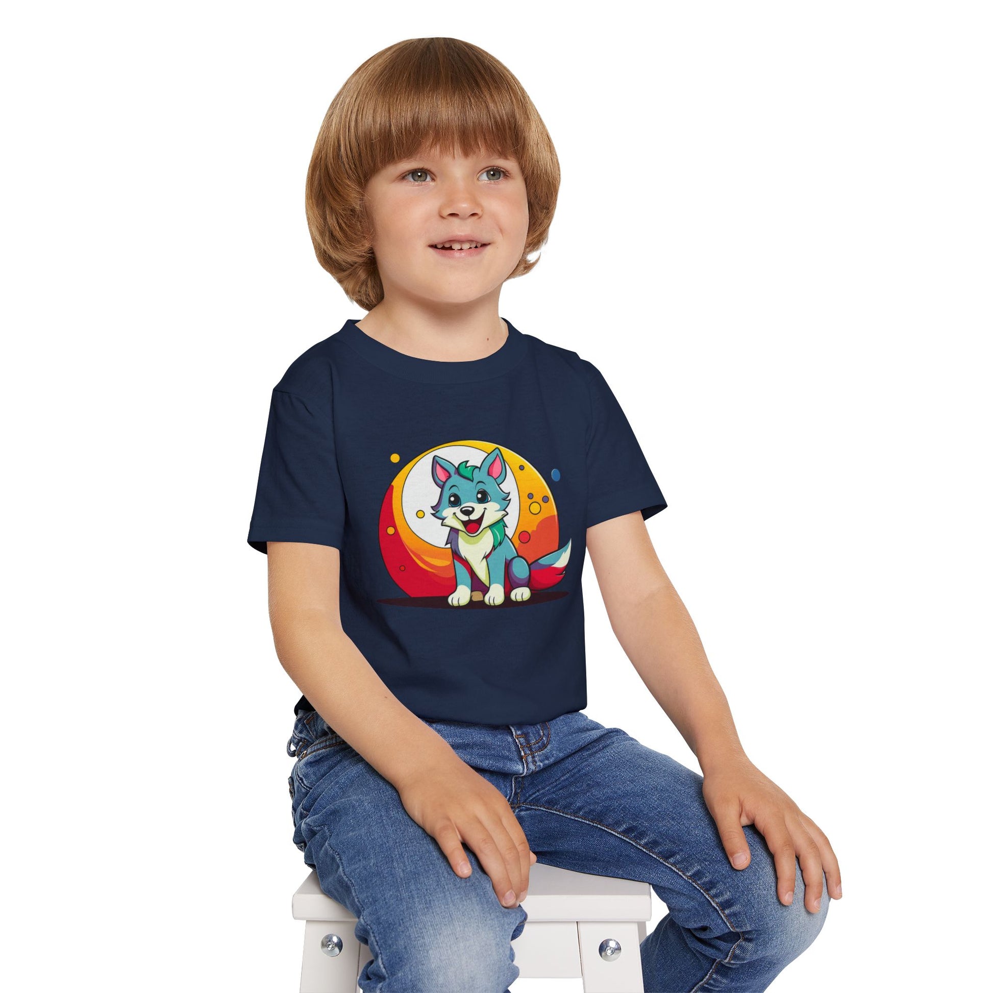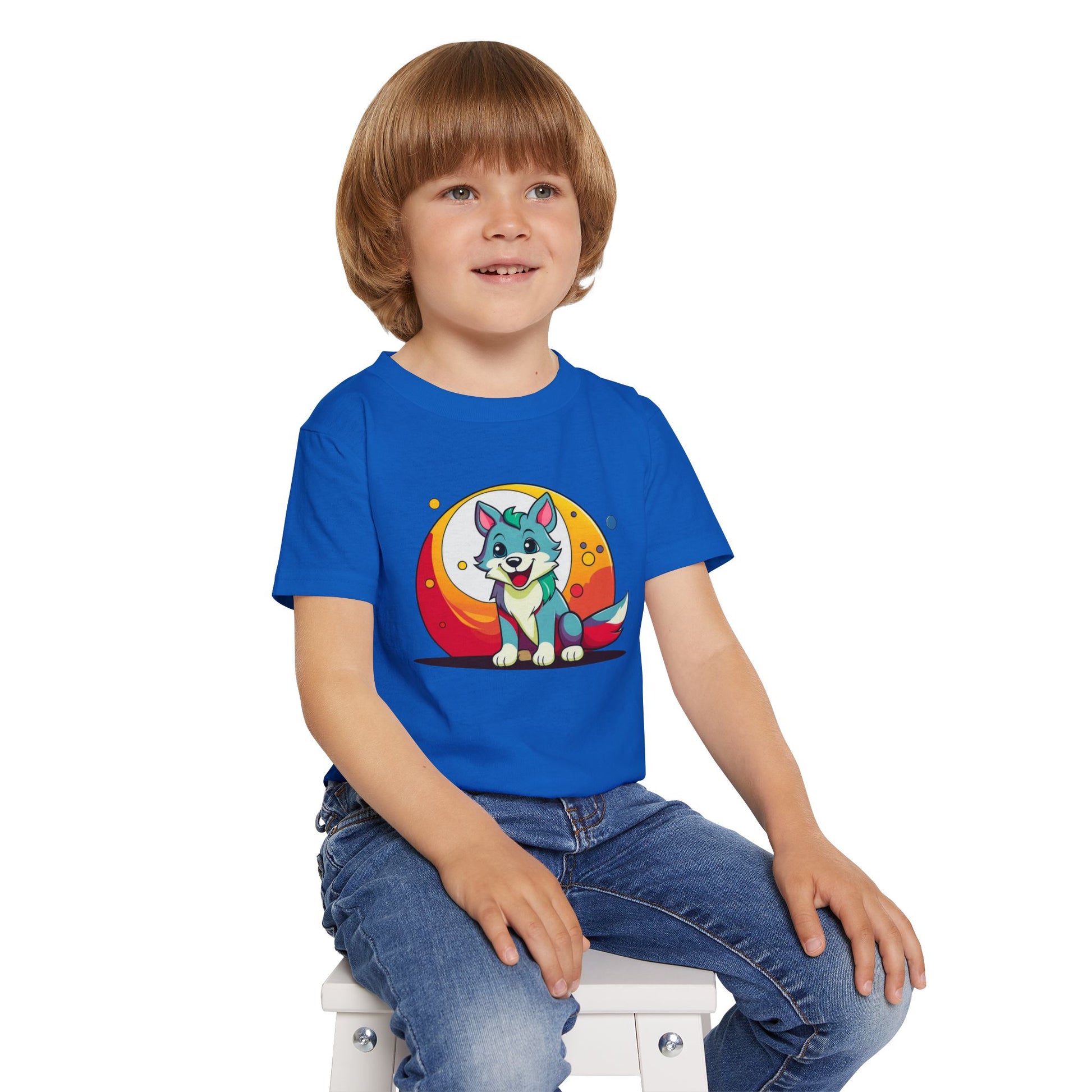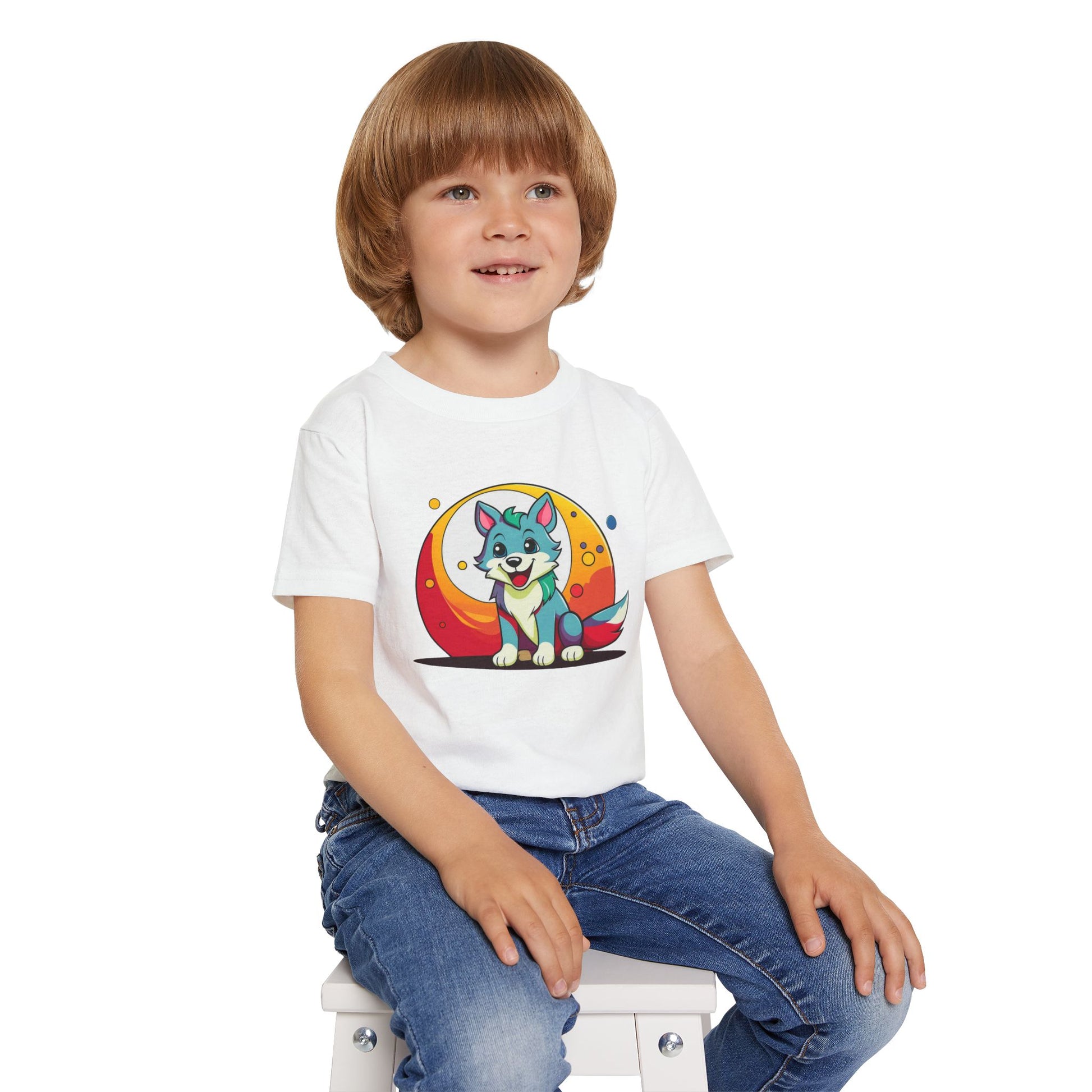 Soft, playful, and made for everyday adventures — this toddler tee features my bright cartoon wolf set against a warm moonlight background.